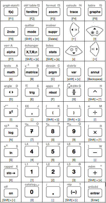 Vous pouvez utiliser le clavier de l'ordinateur pour appuyer sur une touche plutôt que d'avoir à appuyer sur cette touche dans l'image du clavier de TI-SmartView™ CE.