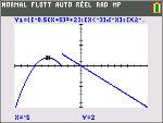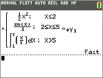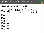 Remarque : les conditions de la fonction définie par morceaux sont entrées à l'aide des relations disponibles dans y : (au-dessus de »). Ces relations s'utilisent généralement pour les tests True (Vrai)(1)/False (Faux)(0) dans la programmation sur la calculatrice.