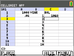 Le curseur étant positionné dans la cellule C2, appuyez sur PLAGE ^. |