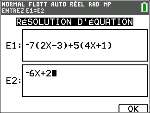 | 1. | Entrez une équation de la forme expression 1=expression 2 (E1=E2). |