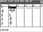 Remarque : dans l'éditeur de listes, saisissez les données dans les listes à l'aide des touches fléchées. L1 à L6 correspondent aux noms de liste intégrés. Vous pouvez créer des noms de liste personnalisés en faisant défiler l'écran jusqu'à un nom de liste vide et en appuyant sur Í.
