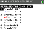 Les commandes de statistiques sont disponibles dans le menu …. Vous pouvez créer des listes de données, puis tracer ou analyser ces dernières à l'aide des commandes de statistiques.