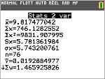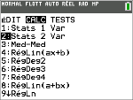 | 3. | Appuyez sur † jusqu'à ce que vous mettiez en surbrillance 2:2-Var Stats (2:Stats 2 var), puis Í. |