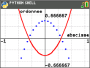 # Après avoir effacé le premier graphique, appuyez sur la touche [var]. La fonction plot() permet de modifier les paramètres d’affichage (résolution,xmin,xmax).
