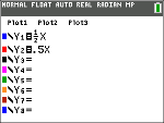 Wenn im Y= Editor eine Funktion eingegeben wird, können Sie eine Wertetabelle anzeigen, indem Sie y 0 drücken.