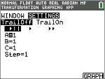 Astuce : sur l'écran graphique, appuyez sur [SETUP] (Configuration) (b) afin d'afficher le menu SETTINGS (Paramètres). Sélectionnez TrailOn (PistAct) pour laisser un graphique en pointillé chaque fois que vous modifiez ou animez un coefficient. La valeur par défaut est TrailOff (PisteDés). TrailOff (PisteDés) et TrailOn (PisteAct) sont également disponibles dans y.. Les paramètres de lecture 1 et de lecture rapide 2 vous permettent de créer un diaporama animé de la représentation graphique qui change en fonction du coefficient sélectionné. Vous pouvez entrer les valeurs des paramètres A-D sous SETTINGS (Paramètres) du moment qu'elles sont utilisées dans Y1 et/ou Y2. La valeur de pas détermine l'incrément de la valeur du paramètre. La valeur Max correspond à la limite supérieure du paramètre qui est attendue dans l'animation. Exemple : Y1=AX Sous SETTINGS (Paramètres), laissez A=1, Step (Pas) = 2 et Max = 10. Cinq écrans seront créés pour animer la représentation graphique de A = 1, 3, 5, 7, 9. Notez que 9 < 10 = Max. L'animation peut compter jusqu'à 13 écrans. Une erreur de mémoire sera générée si les paramètres Step (Pas) et Max requièrent plus de 13 écrans pour créer l'animation. Pour continuer, appuyez sur p, puis sur } jusqu'à SETTINGS (Paramètres). Modifiez la valeur de Step (Pas) ou Max pour respecter la limite des 13 écrans. |