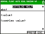 | • | If you do not see PASTE on the Catalog Help screen, press y 5 until you return to the home screen, then repeat your actions. If this happens, it may mean the screens were layered and the previous screen did not have an active cursor on an input line to accept the pasting of the function or command. |