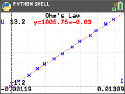 First, enter two lists in the CE OS. Then, for example, calculate [stat] CALC 4:LinReg(ax+b) for your lists. This stores the regression equation to RegEQ in the OS. Here is a program to recall RegEQ to the Python experience.