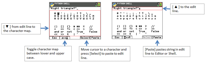 Note: When the cursor focus is in the [a A #] edit line, selected keypad keys are not available. When focus is in the character map, the keypad is restricted.