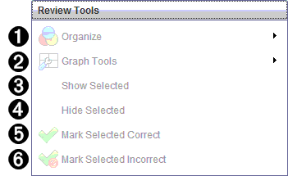 Las herramientas de Revisión le permiten organizar los datos de las respuestas, usar herramientas de gráficos, ocultar o mostrar respuestas y marcar respuestas de Pregunta y Encuesta Rápida como correctas o incorrectas. |