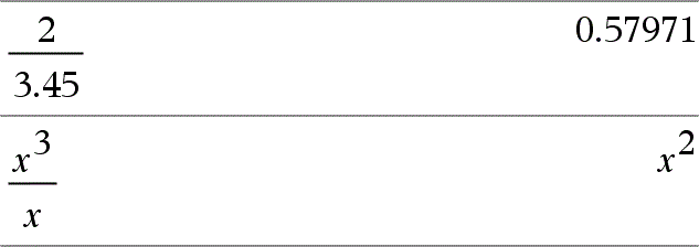 Entrega el cociente de Expr1 dividido entre Expr2. Nota: Vea también Plantilla de fracciones, aquí. |