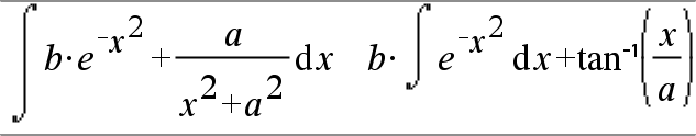 ‰(Expr1, Var[, Baja, Alta]) Þ expresión ‰(Expr1, Var[, Constante]) Þ expresión Entrega la integral de Expr1 con respecto de la variable Var de Baja a Alta. Nota: Vea también Plantilla de integral definida o indefinida, aquí. Nota: Usted puede insertar esta función desde el teclado al escribir integral(...). |