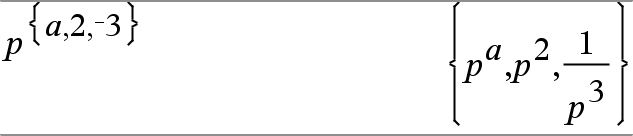 Lista1 ^ Lista2 Þ lista Entrega el primer argumento elevado a la potencia del segundo argumento. Nota: Vea también Plantilla de exponentes, aquí. Para una lista, entrega los elementos en Lista1 elevados a la potencia de los elementos correspondientes en Lista2. En el dominio real, las potencias fraccionarias que han reducido los exponentes con denominadores impares usan la rama real contra la rama principal para el modo complejo. |