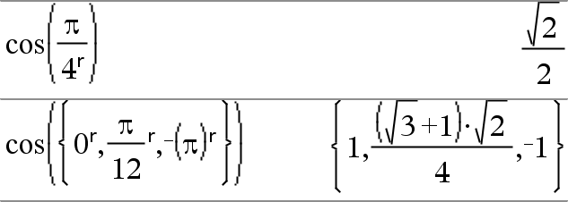 En modo de ángulo en Radianes: Nota: Para forzar un resultado aproximado, Dispositivo portátil: Presione / ·.