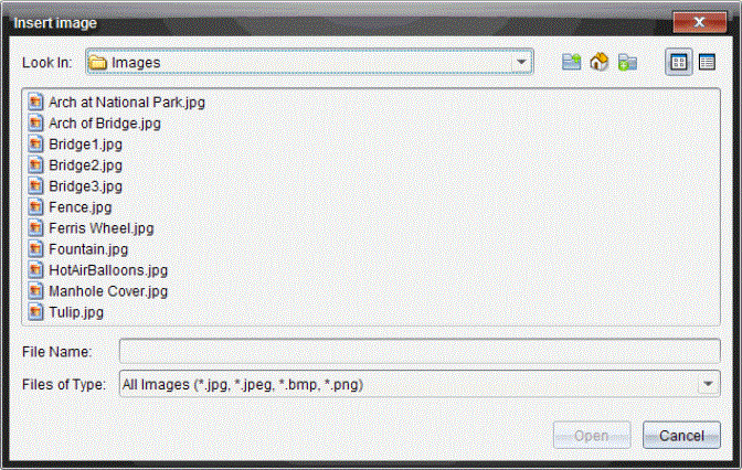 TI-Nspire™ software -ohjelmaa käytettäessä on kuvia mahdollista lisätä, kopioida, siirtää ja poistaa.