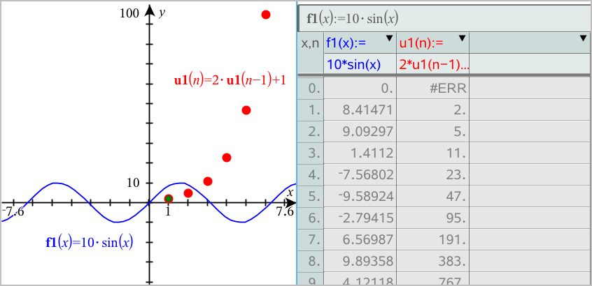 La table s’affiche avec des colonnes de valeurs correspondant aux fonctions actuellement définies.