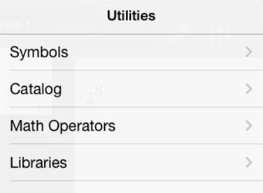 Les fonctions et commandes système, les symboles et les modèles d’expression sont stockés dans Utilitaires. Pour accéder à Utilitaires, tapez sur