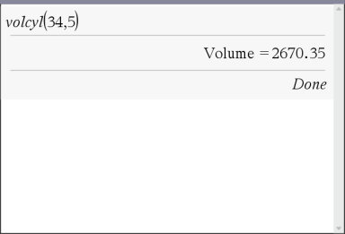 2. Exécutez ce programme pour afficher le volume d'un cylindre ayant une hauteur de 34 mm et un rayon de 5 mm.