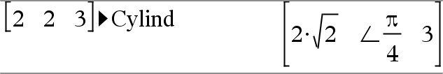 Vecteur 4Cylind Remarque : vous pouvez insérer cet opérateur à partir du clavier de l'ordinateur en entrant @>Cylind. Affiche le vecteur ligne ou colonne en coordonnées cylindriques [r,±q, z]. Vecteur doit être un vecteur à trois éléments. Il peut s'agir d'un vecteur ligne ou colonne. |