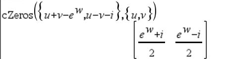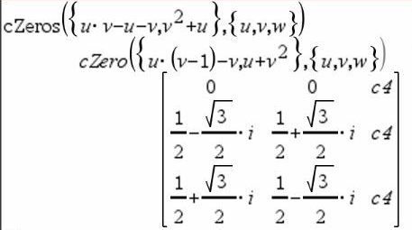 cFactor(Expr1,Var) factorise Expr1 dans C en fonction de la variable Var. La factorisation de Expr1 décompose l'expression en autant de facteurs possible qui sont linéaires dans Var, avec peut-être des constantes non réelles, même si cela introduit des constantes irrationnelles ou des sous-expressions qui sont irrationnelles dans d'autres variables. Les facteurs et leurs termes sont triés, Var étant la variable principale. Les mêmes puissances de Var sont regroupées dans chaque facteur. Incluez Var si la factorisation ne doit s'effectuer que par rapport à cette variable et si vous acceptez les expressions irrationnelles dans les autres variables pour augmenter la factorisation par rapport à Var. Une factorisation incidente peut se produire par rapport aux autres variables. |