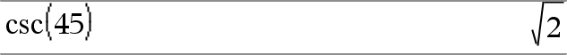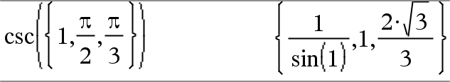 csc(Expr1)Þexpression csc(Liste1)Þliste Affiche la cosécante de Expr1 ou donne une liste comportant les cosécantes de tous les éléments de Liste1. |
