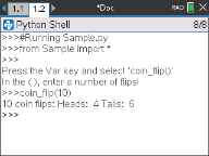 ••print(n, "coin flips: Heads: ", heads, "Tails: ", tails)