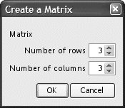 Nota: Se criar uma matriz com um grande número de linhas e colunas, pode demorar alguns momentos a aparecer. |