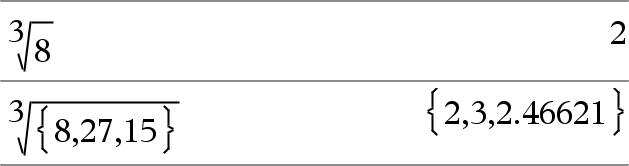 Nota: Escreva o primeiro valor, prima l e, em seguida, escreva o expoente. Para colocar o cursor na base, prima a seta direita ( ¢ ). Nota: Consulte também ^ (potência), aqui. |