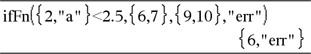 ifFn(ExprBooleana, Value_If_true [,Value_If_false [,Value_If_unknown]]) ⇒ expressão, lista ou matriz Avalia a expressão booleana ExprBooleana (ou cada elemento da ExprBooleana ) e produz um resultado com base nas seguintes regras: