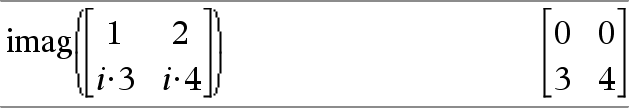 imag(Matriz1) ⇒ matriz Devolve uma matriz das partes imaginárias dos elementos. |