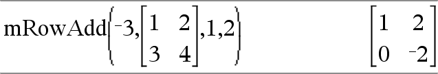 mRowAdd(Valor, Matriz1, Índice1, Índice2) Þmatriz Devolve uma cópia de Matriz1 com cada elemento na linha Índice2 de Matriz1 substituído por: |