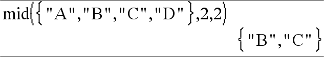 mid(ListaDaCadeiaDeOrigem, Início [, Contagem ]) Þlista Devolve as cadeias Contagem da lista de cadeias ListaDaCadeiaDeOrigem, começando pelo número de elementos Início. |