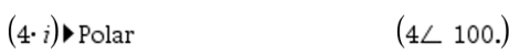 ValorComplexo pode ter qualquer forma complexa. No entanto, uma entrada reiθ provoca um erro no modo de ângulo Graus. Nota: Tem de utilizar os parêntesis para uma entrada polar (r∠θ). |