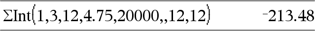 GInt(NPmt1, NPmt2, N, I, PV, [ Pmt ], [ FV ], [ PpY ], [ CpY ], [ PmtAt ], [ ValorArredondado ]) Þvalor GInt(NPmt1, NPmt2, TabelaDeDepreciação) Þvalor Função de amortização que calcula a soma do juro durante um intervalo especificado de pagamentos. NPmt1 e NPmt2 definem os limites iniciais e finais do intervalo de pagamentos. N, I, PV, Pmt, FV, PpY, CpY e PmtAt são descritos na tabela de argumentos TVM, aqui.