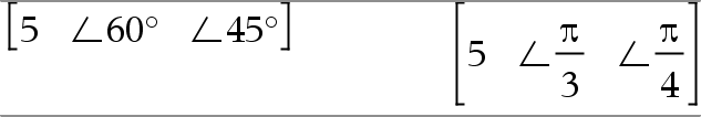 No modo Radianos e formato do vector definido para: rectangular