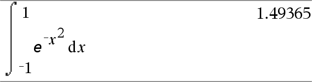 ‰(Expr1, Var[, Inferior, Superior]) Þ expressão ‰(Expr1, Var[, Constante]) Þ expressão Devolve o integral de Expr1 em relação à variável Var de Inferior a Superior. Nota: Consulte também o modelo de integral definido ou indefinido, aqui. Nota: Pode introduzir esta função através do teclado, escrevendo integral(...). |