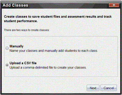 | 3. | Selecione Carregar um ficheiro CSV a partir da caixa de diálogo Adicionar turmas. |