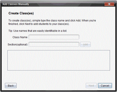 O assistente Adicionar turmas orienta-o no processo de preparação de turmas. O software solicita que adicione uma turma e que adicione alunos à turma. Pode optar por adicionar turmas manualmente ou com um ficheiro CSV.