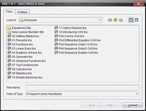 O TI-Nspire™ CX Premium Teacher Software para unidades portáteis transfere apenas ficheiros .tns. |