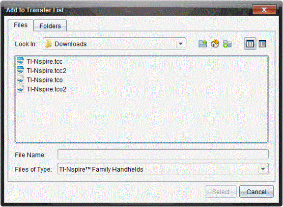 | • | Para atualizar uma unidade portátil TI-Nspire™ CX, selecione TI-Nspire.tco. |