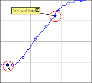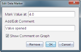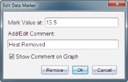 Os marcadores de dados permitem-lhe realçar pontos de dados específicos, como quando altera uma condição. Por exemplo, pode marcar um ponto no qual um químico foi adicionado a uma solução ou quando o calor é aplicado ou removido. Pode adicionar um marcador com ou sem comentário e pode ocultar o comentário.