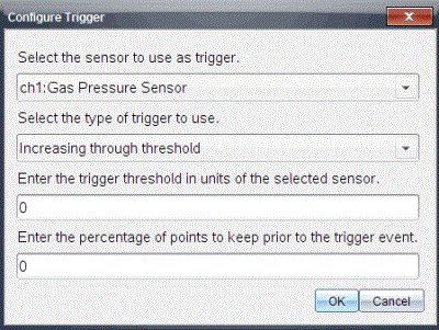 Para iniciar automaticamente a recolha de dados com base numa leitura específica do sensor, o Adaptador de laboratório TI-Nspire™ e o sensor têm de estar ligados.
