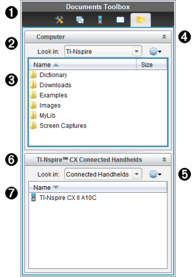 Unidades portáteis conetadas. Lista as unidades portáteis conetadas. As várias unidades portáteis são listadas se estiver mais do que uma unidade portátil conetada ao computador ou quando utiliza as Docking Stations do TI-Nspire™.