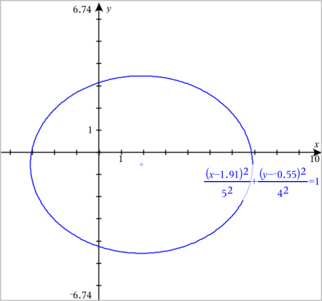 | 1. | Arraste a elipse a partir do seu centro para explorar o efeito da translação na equação. |