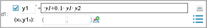 2. Mova para o campo da relação e introduza a expressão que define a relação. Por exemplo, pode introduzir -y1+0.1*y1*y2.