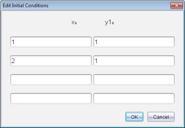 Nota: Os valores x0 são comuns a todas as EDOs num problema mas só podem ser introduzidos ou modificados na primeira EDO.