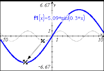 Alguns tipos de funções podem ser transladados, esticados e/ou rodados ao arrastar partes do gráfico. À medida que arrasta, a expressão para o gráfico é atualizada para refletir as alterações.