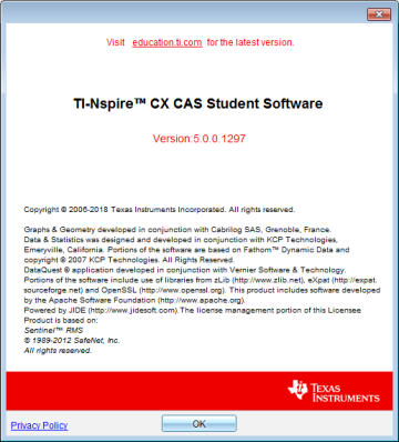| 1. | A partir do menu Ajuda, selecione Acerca do Software TI-Nspire™<Product Name>. |