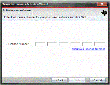 A partir do menu , selecione para abrir o Assistente de Ativação da Texas Instruments. |
