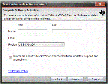 Preencha os campos nome e e-mail e, em seguida, selecione a região onde vive se for diferente da entrada predefinida. Se pretender receber e-mails da TI sobre atualizações, assistência e promoções, certifique-se de que a caixa de verificação está selecionada. |